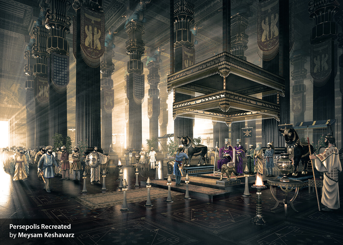 The artwork is a reconstruction of Apadana Palace in Persepolis. The palace was built by the founder of Persepolis “Darius the Great” in 550 BC in Persia.